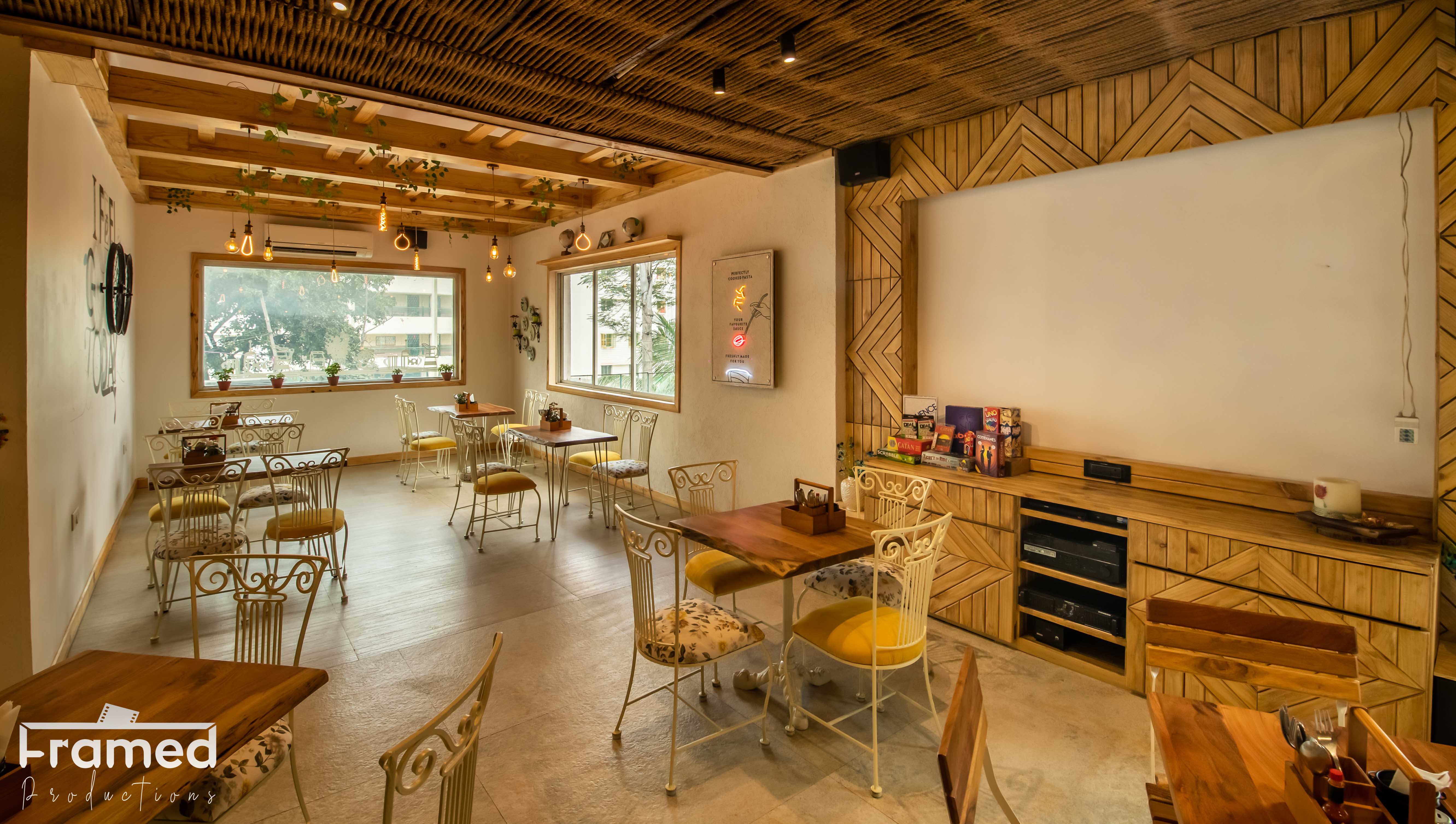 Welcome to La Macario, a whimsical haven where every visit promises a delightful escape from the ordinary. Infused with warmth and charm, our cozy café invites you to indulge in the simple pleasures of life. Bathed in soft, warm light and adorned with light-colored wood, the space exudes a welcoming ambiance that feels like a comforting embrace. Playful wall decor adds a touch of personality, while a slatted wooden ceiling, adorned with hanging plants, brings the outdoors in, creating a serene oasis in the heart of the city.