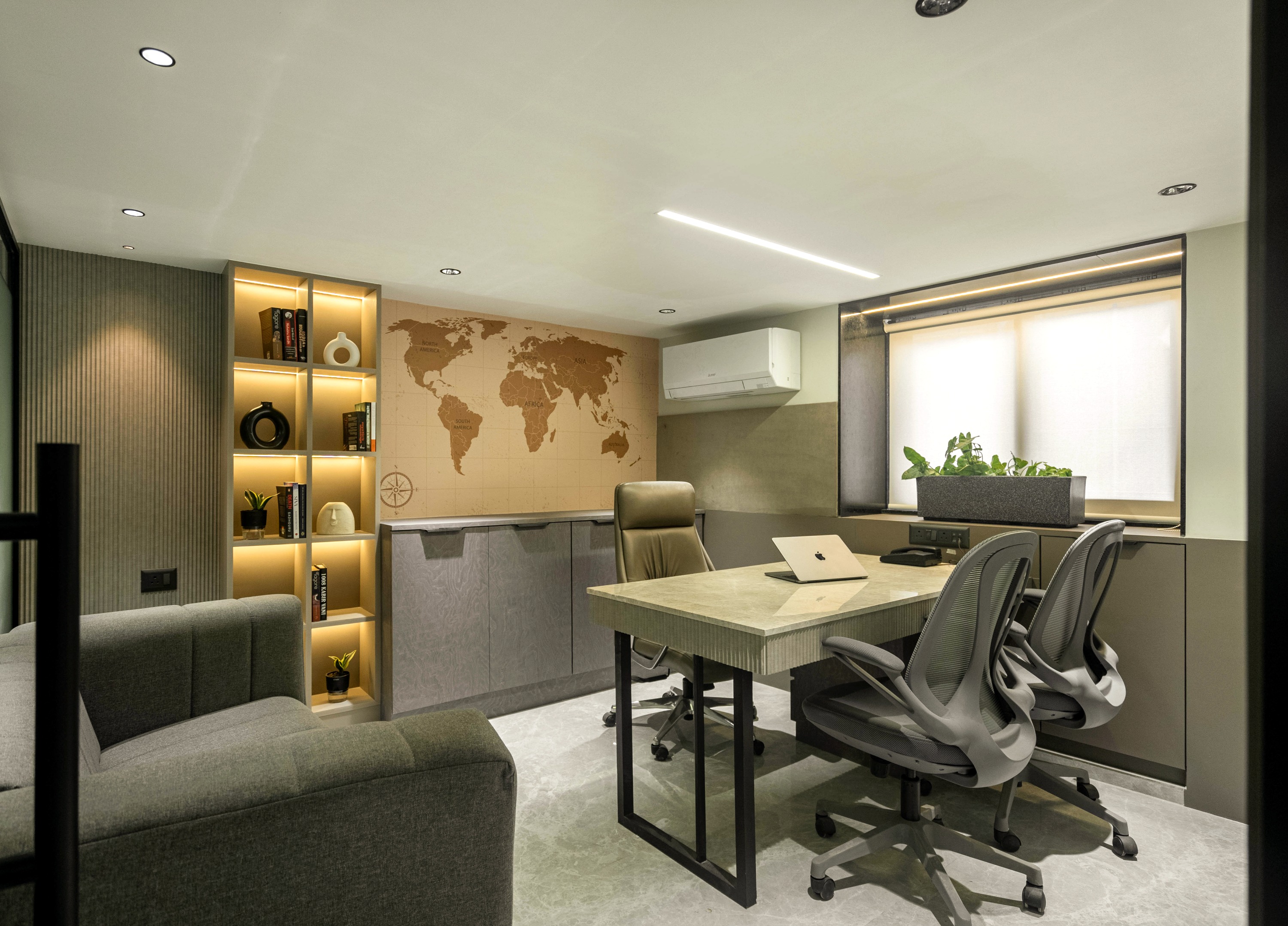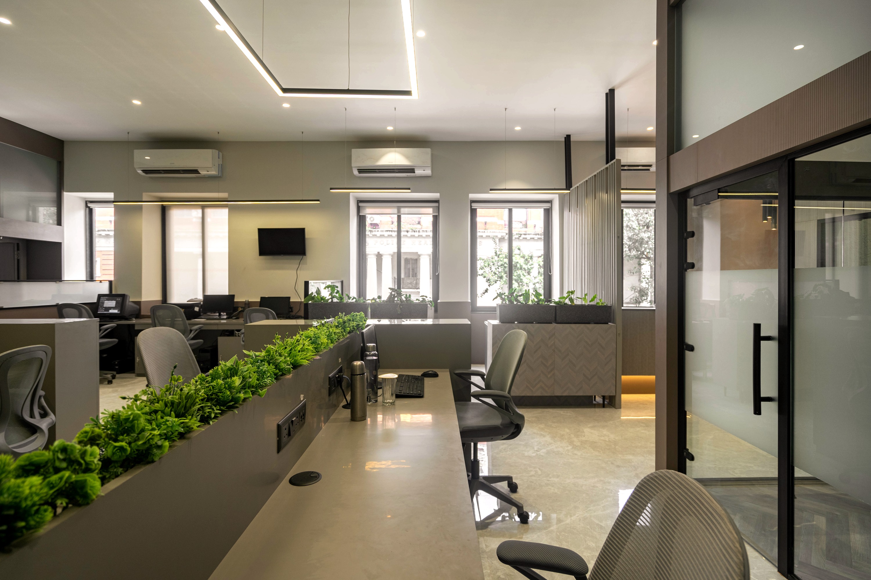 Step into our thoughtfully crafted office space, where every detail is curated to foster creativity, productivity, and well-being. Bathed in the gentle glow of warm lighting, the atmosphere exudes a sense of comfort and invitation. Lush greenery accents the space, bringing elements of nature indoors and creating a refreshing environment that inspires and rejuvenates.